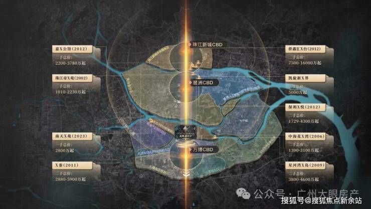 广州黄金中轴之上,千万级豪宅鼎立其间,呈现出“2+1"的豪宅分布格局。