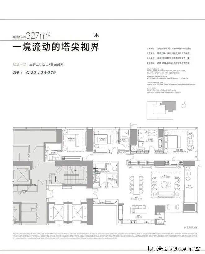 餐客西厨一体,单端头享三面采光﹣终于做到主仆双动线了!四卧室除了书房全是套间,人多也能住得舒服,会客观景一流
