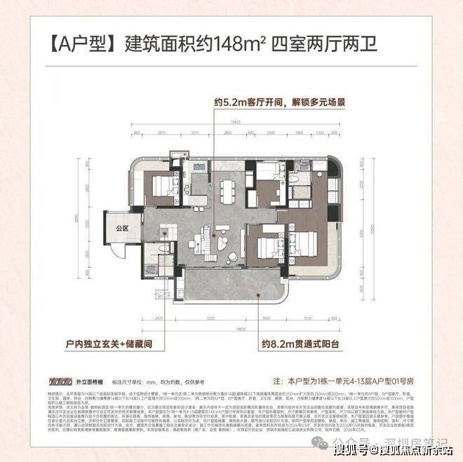层高3.1米,3梯4户,全铝板+玻璃幕墙外立面(弧形线条设计),得房率约95-96%。小区内部配置泳池和泛会所。