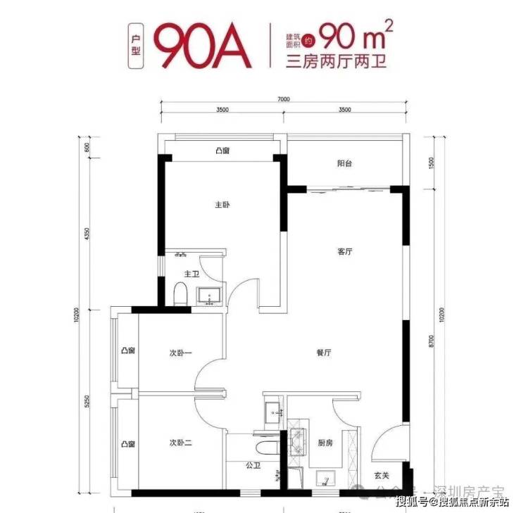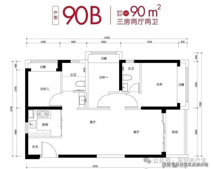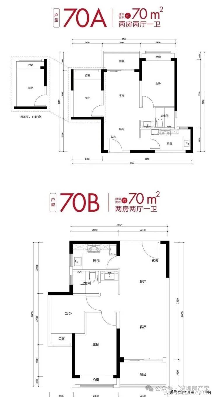 💎户型:建面约70㎡两房、建面约90㎡三房两卫