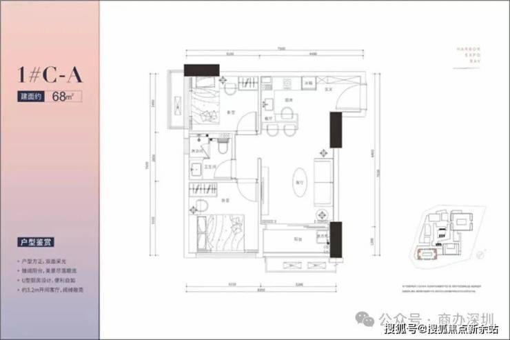 71%超高使用率;34-68平1-2房,带阳台、通燃气,品质精装交付。