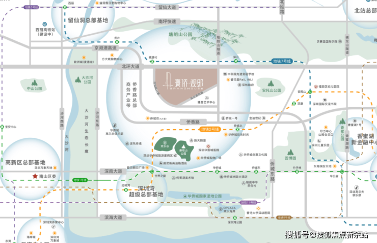 快捷交通路网,北环大道/南坪快速/侨香路/京港澳高速,20-30分钟到福田CBD、深圳北站、皇岗/福田/深圳湾三大口岸、宝安机场等,城芯而居,超享生活。