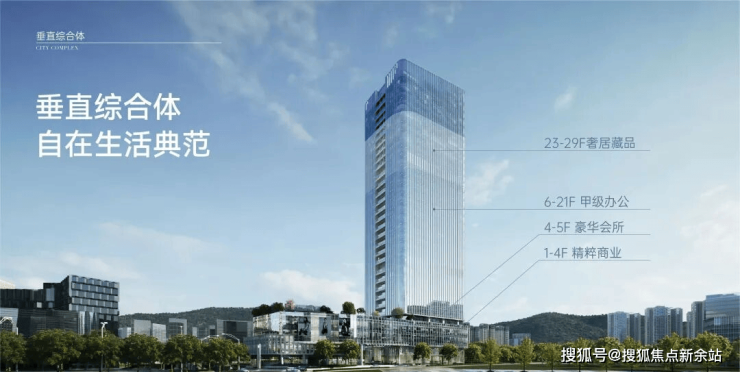 集合云端居住、奢雅会所、精粹商业、甲级办公为一体的垂直综合体,生活&休闲、社交&事业,悦然相逢,自在切换。