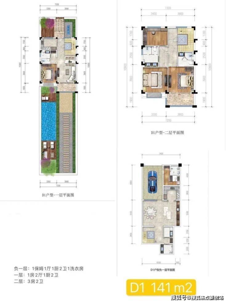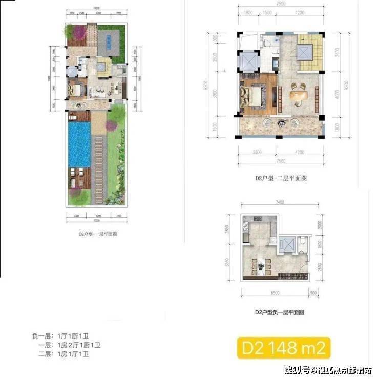 D2户型:2房4厅3卫|下叠带花园|共4套