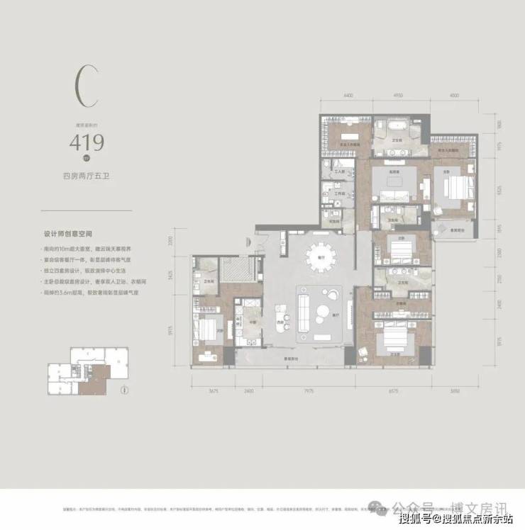 确保了总裁公寓的优越尊享,而创新性的共井分梯设计,专属私密性。