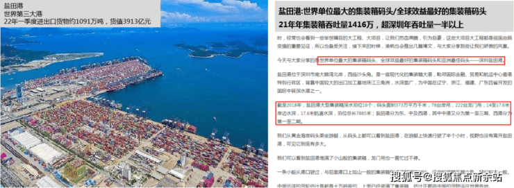 盐田拥有全球效益最好集装箱码头-盐田港。盐田港承担全省超三分之一外贸进出口,全国对美贸易四分之一货量,直接带动约百万人就业,间接带动千万人就业。