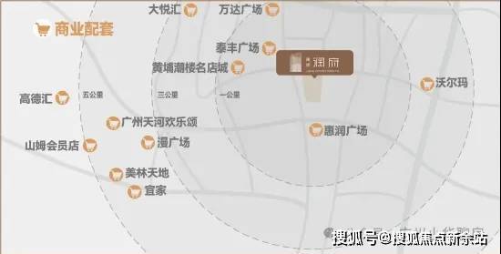 项目的对面就是老黄埔的惠润广场,虽然不是很高端,但也是老黄埔的老牌商业,5号线抵达美林天地、宜家家居、山姆会员店等;7号线通达万达广场、至泰广场等