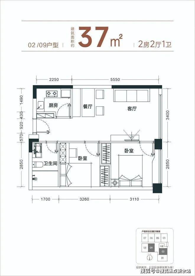 产品稀缺性 - 37平方米小两房,实际使用面积54-63平方米,使用率145%-170%