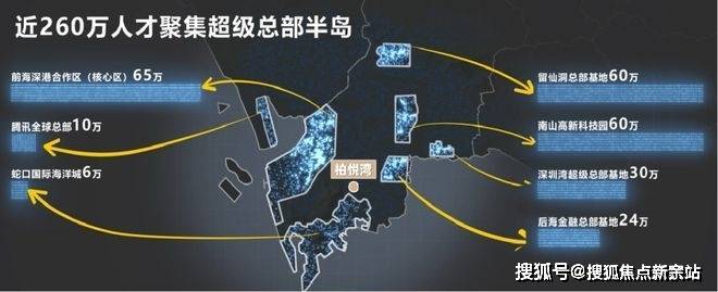 七大全球总部基地,激荡全球资本的湾区超核,由总部经济带串联,吸引大批诸如腾讯、大疆、阿里巴巴等行业龙头企业,以及大批总部企业入驻,未来将吸引260万人才聚集。·后海金融总部基地:国际金融创新发展集聚区。·前海深港现代服务业合作区:国家战略性门户枢纽。