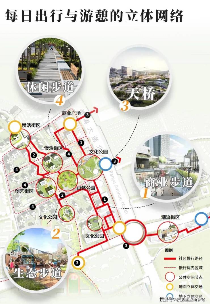 全盘大手笔的整体抬高和整合开发模式。结合海绵城市规划,既解决下雨积水问题,又打造下穿环路。更结合岭南骑楼+新加坡立体花园理念,打造约600米双首层立体花园街区。共同为业主构建了三重归家动线。