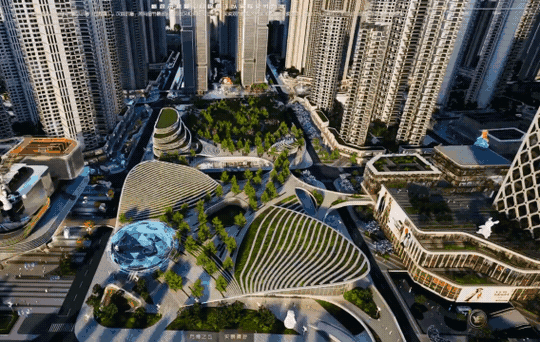 还通过“新链接”的思路,设计立体环廊系统、慢行步道、天桥等,以及开放式的设计,将各个空间节点有机串联起来,丝滑融通👇