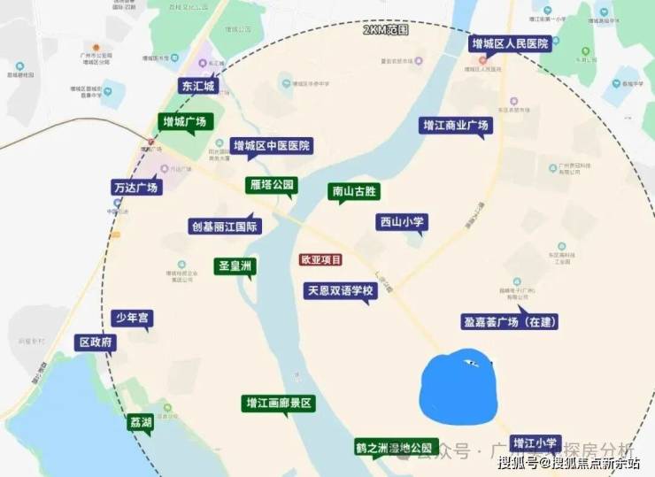 项目与增城万达广场仅一桥之隔,2公里范围内有增城万达广场、合汇城、东汇城、增江商业广场等大型商场。