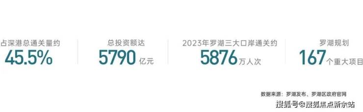 深圳繁华原点罗湖,立足““三力三区”产业发展新战略定位,汇聚约100家持牌金融机构,将孵化30家以上国际创业企业;罗湖、莲塘、文锦渡三大口岸年通关5876万人次,口岸周边聚集约6000家香港企业。