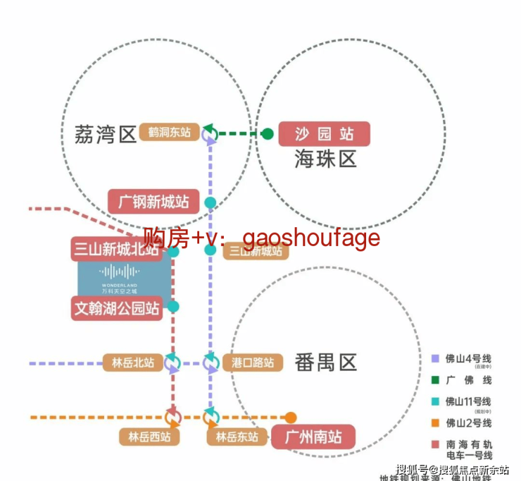 广佛线(运营)佛山2号线(运营)、佛山4号线(在建)佛山11号线(规划中,预计2023年动工)未来可实现4站到荔湾、4站到番禺、6站到海珠,广佛出行更便捷