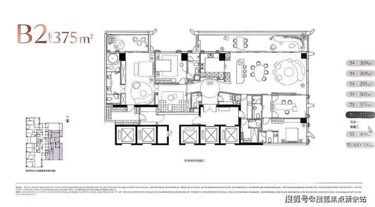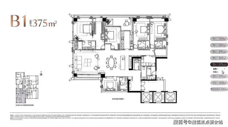 低区5F起(150米以内)是约209-304㎡四房以上大户型;