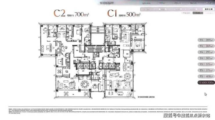 超高区58F起(200米以上)是约500-700㎡顶级大平层