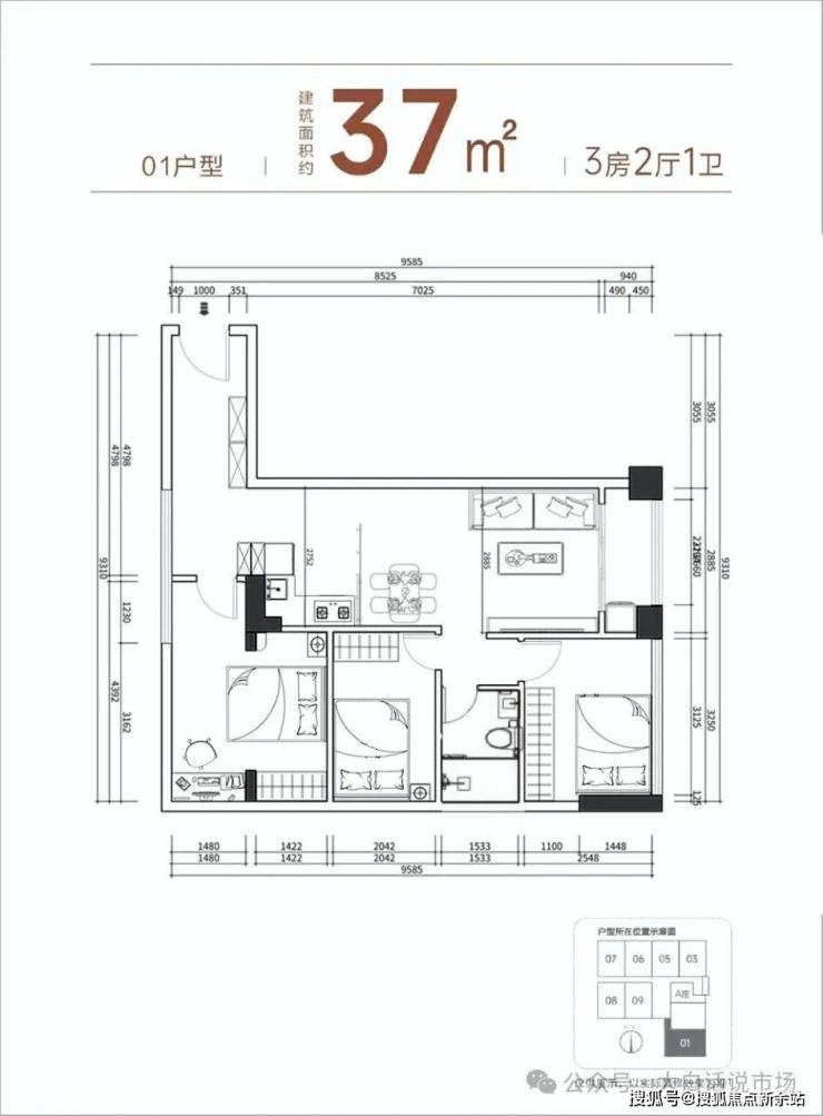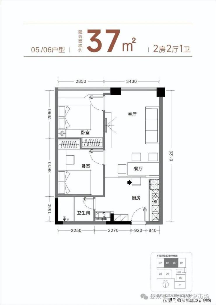 【产品面积】约37㎡二三房(实际套内使用面积接近54㎡)