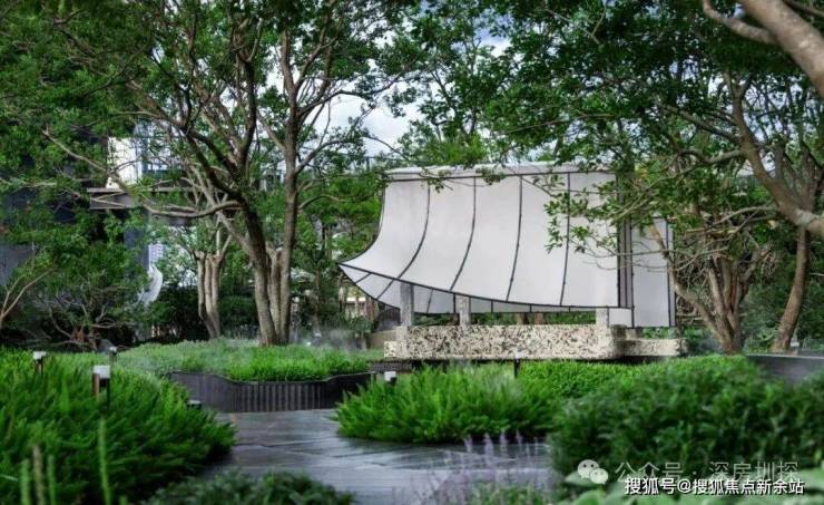 茶室底座,用的是巴西进口的雪山银狐奢石。这类奢石,因为独特的透光性,一般用于顶豪室内装饰,如今却被保利大胆用在园林公区,奢华程度可见一斑。