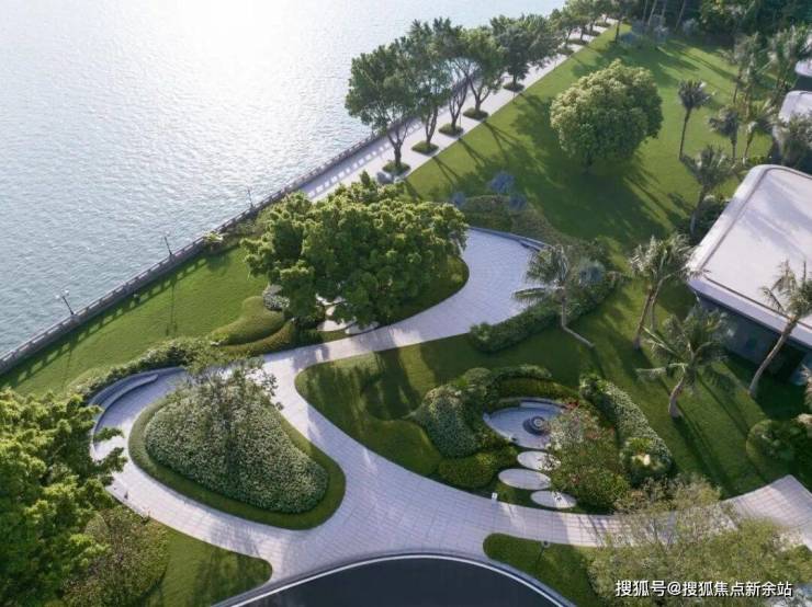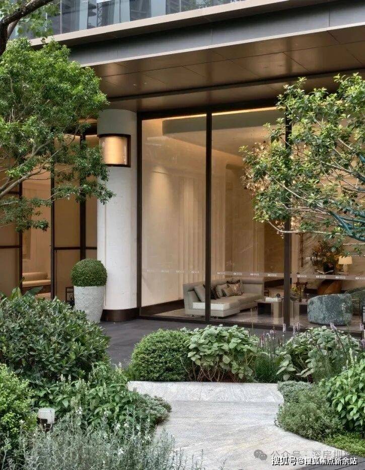 穿过滨江公园步入社区,安缦酒店同款度假风园林已局部呈现,没有效果图滤镜,全是真材实料堆出来的质感。