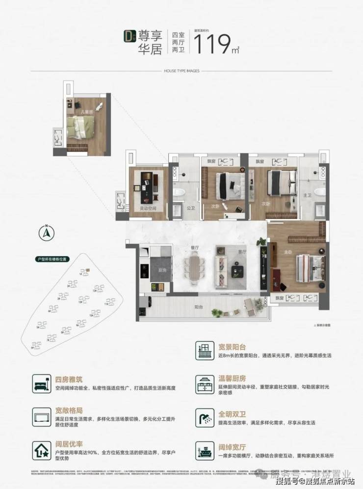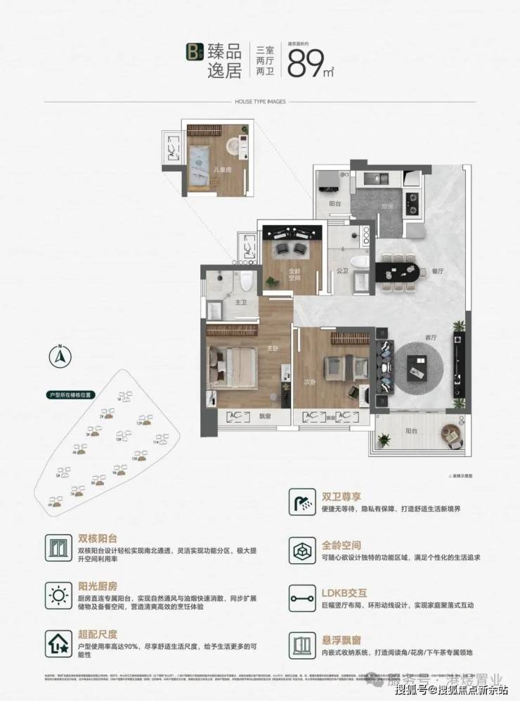 2️⃣958呎臻品逸居:三開間朝南格局,採光通風俱佳,小家庭品質生活一步到位