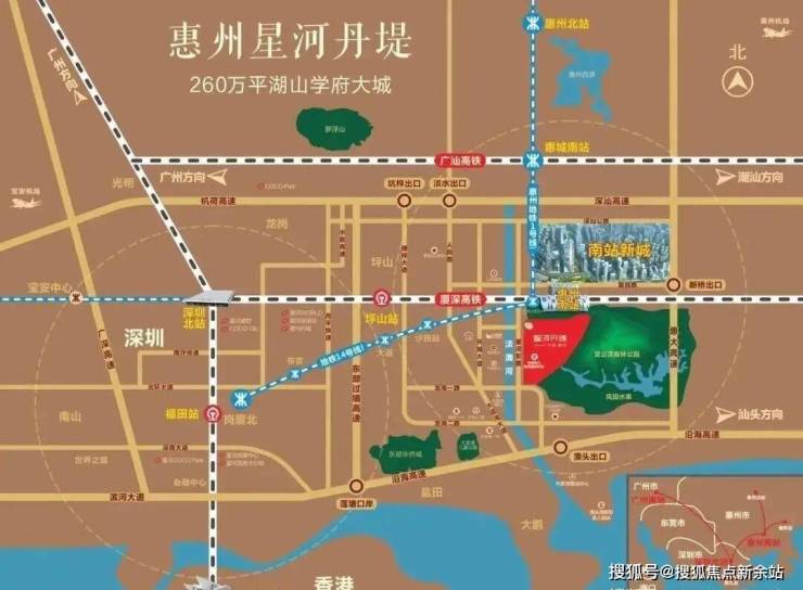 交通方面:项目就在惠州南高铁站附近,直线距离仅800米不到,车程5分钟即达。“从惠州南站乘坐高铁20分钟抵深圳北,半小时之内到福田站,未来还有城轨,也有14号延长线。这样你平时从惠阳回深圳,或者自驾去其他临深区域办事,都很方便。”