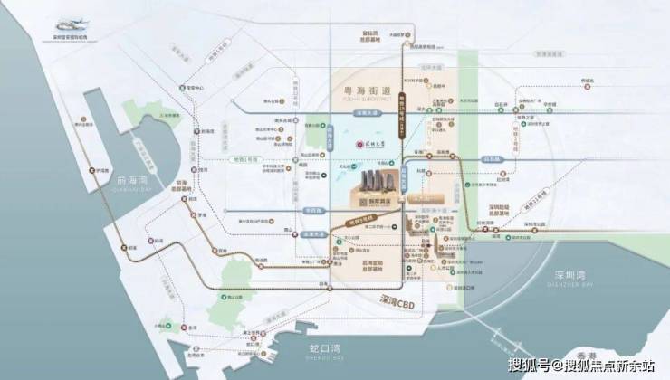 道路交通——四横三纵立体路网,四横有滨海大道、深南大道、北环大道、学府路;三纵有南海大道、后海大道、白石路出行,多主干道快速分流,畅达全城。项目直线距离蛇口码头约6.7公里,直线距离宝安国际机场也仅约15公里。