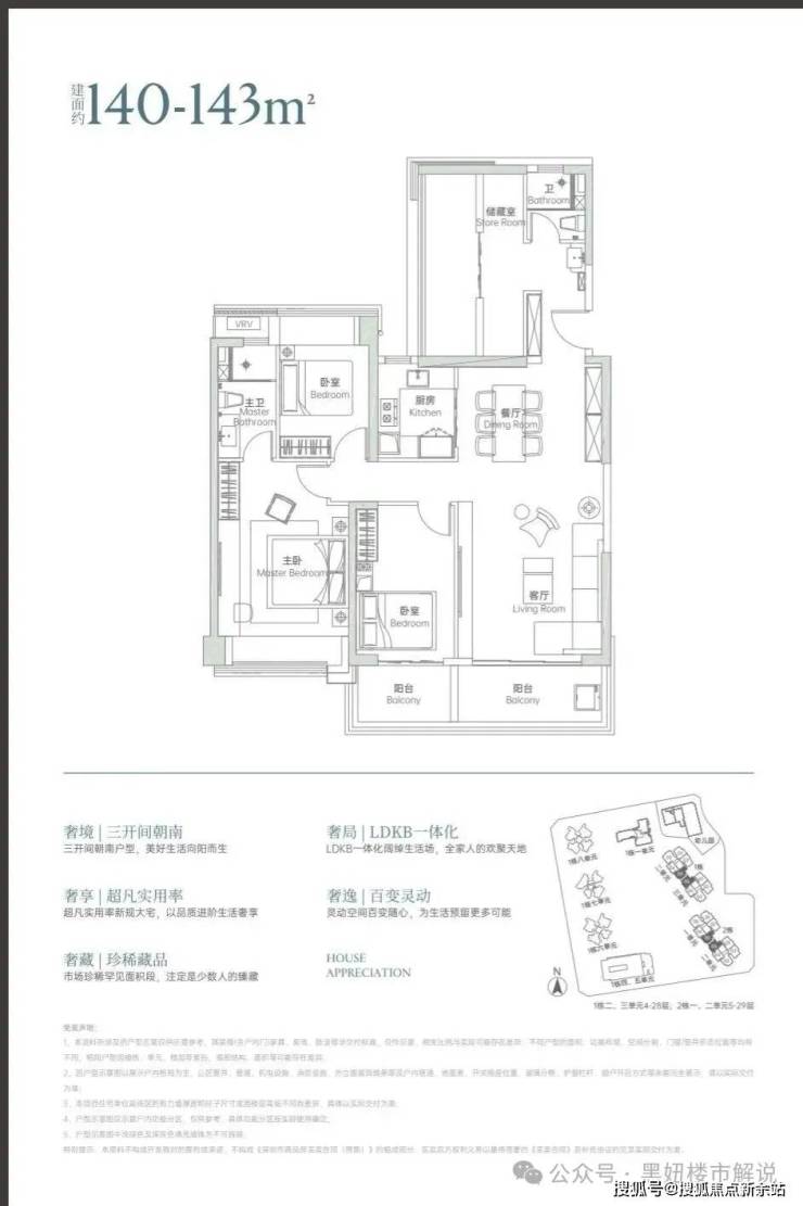 其中住宅20.3万㎡(含保障房1.5万㎡)、商务公寓3万㎡、商业5万㎡,以及配建有幼儿园和图书馆等市政生活配套。可售总套数约923套,面积约105-280㎡3-6房,还有少量顶楼复式。套内建面小于90㎡的有736套,占比79.74%,回迁面积为70-95㎡2-3房。