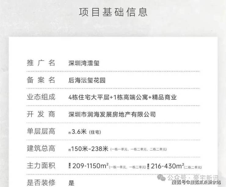 最新消息:深圳湾澐玺.南区备案价: