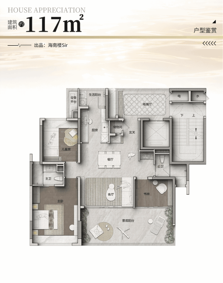 得房率约103%,实际使用面积达到约120㎡,轻松升级为三房的改善配置。