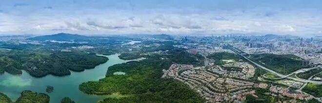 隐逸繁华 进退有度 ▷作为前海中部黄金发展带和东部生态休闲带双极核心辐射区,深圳院子所在的尖岗山墅区,纯净天地,咫尺繁华。一面执掌枢纽,海陆空轨立体路网纵横市心,迅捷到达前海、宝中、福田与罗湖,畅达码头与机场,直达港澳,无缝连接大湾区;一面依山而建、傍水而居,坐拥六山、四园、两水库,623公顷生态绿轴入怀,相当于3个莲花山及5个香蜜湖,原生都市绿肺在门前绵延。出则繁华,入则静谧。