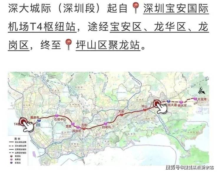 在建中预计2026年通车的深大城际坪山终点站聚龙站距离该项目也只有3.5公里,深大城际可从坪山直达深圳宝安机场,只需要45分钟。