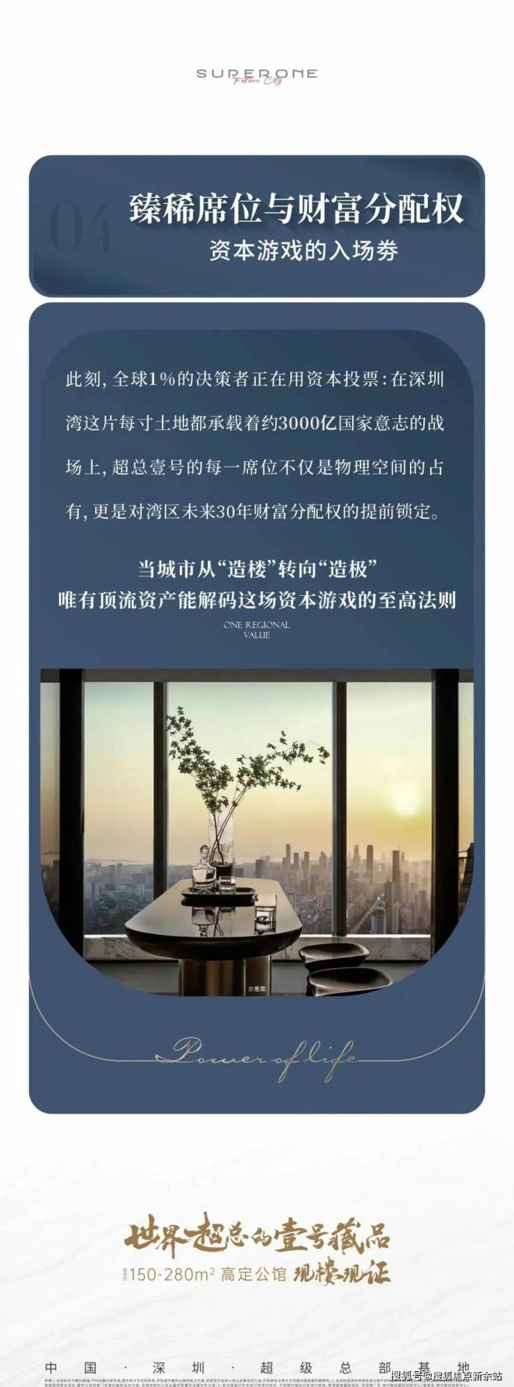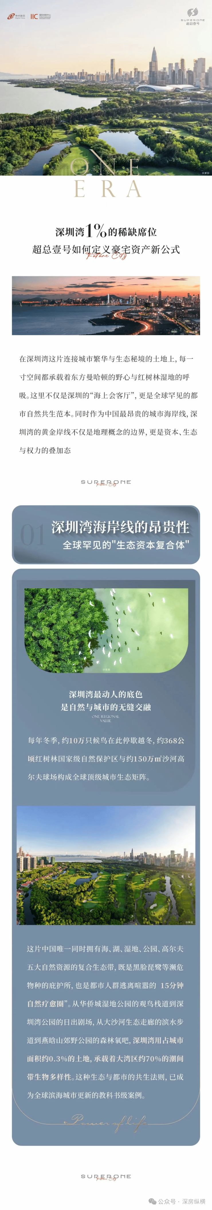 IIC 超总壹号,位处深湾 CBD 核心、不用太高楼层,就能眺望红树湾或华侨城湿地公园。项目是神州数码集团总部200米高双塔其中的公寓部分,有空中展示中心、极具艺术感的一线风景样板房。