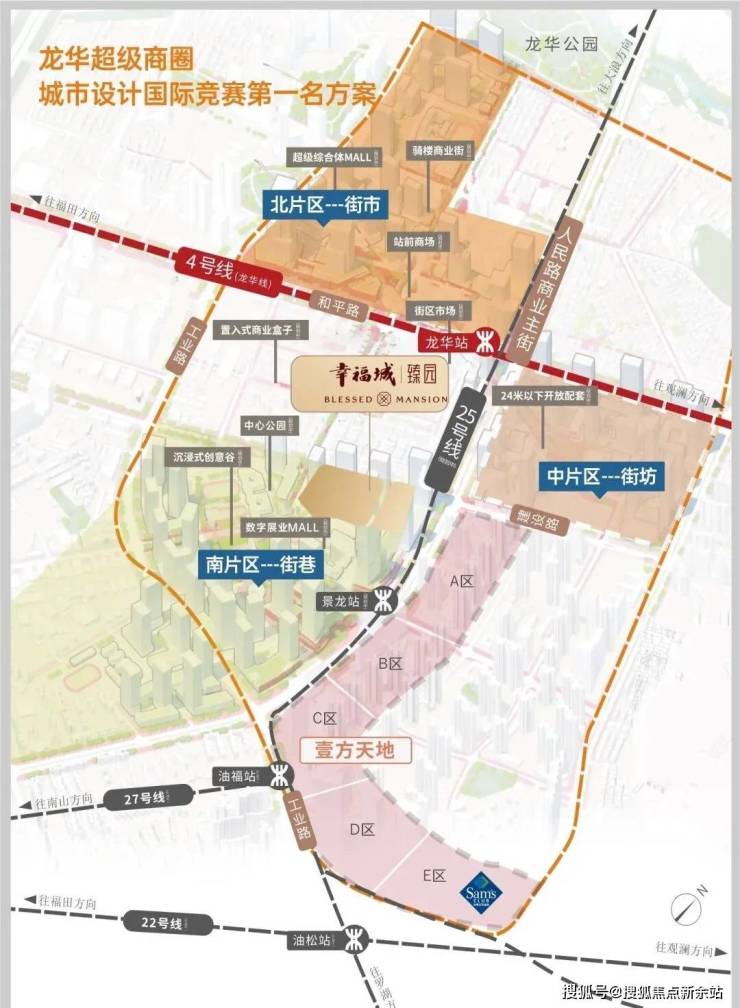 项目占位龙华超级商圈几何正芯,龙华商业中心城市更新北片区,傲踞天赋C位地块。