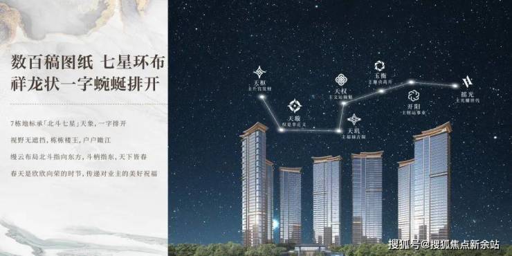 更特别的是,灯湖缦云7栋沿江楼栋,通过佛山未见一字列阵,连成“北斗七星”阵列,自西向东分别以天枢、天璇、天权、天玑、玉衡、开阳、瑶光命名,显赫尊崇气韵浑然天成。