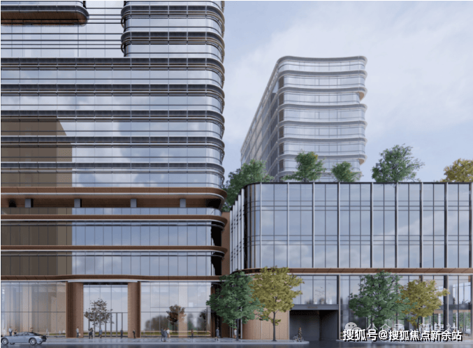 外立面采用木色陶板与全景玻璃幕墙,以“曲水流觞”的涟漪造型呼应珠江文脉,同时融入垂直生态理念,打造空中绿岛与可呼吸的建筑肌理。