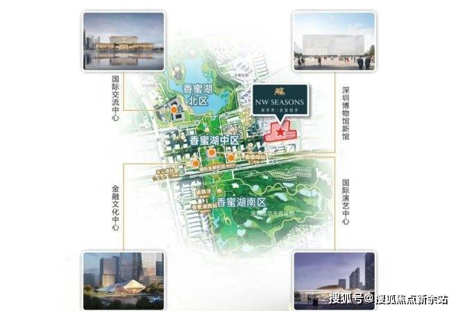 项目位于福田中心区景田片区,紧邻香蜜湖金融中心,周边汇聚了福田顶级的配套,西南是国际演艺中心和高尔夫俱乐部,西北处是香蜜湖,东面则是市民中心、深交所。