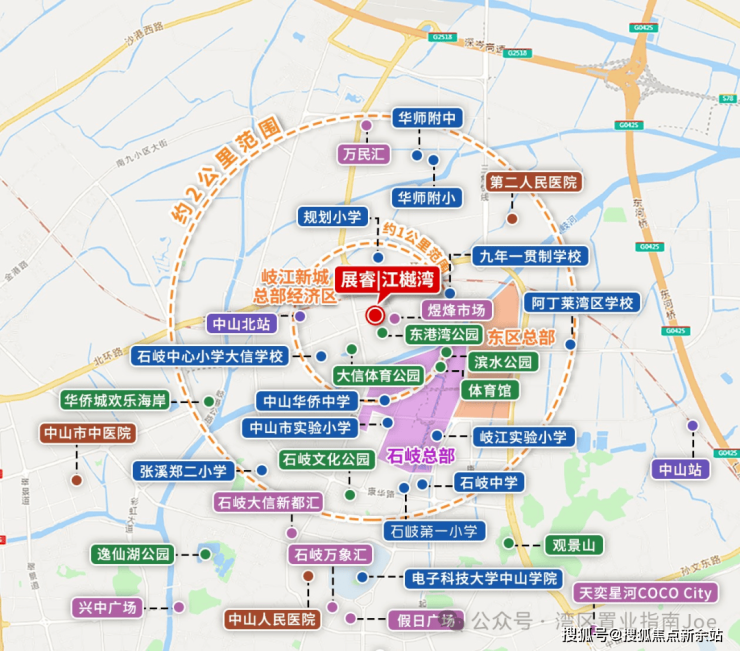 临近中山欢乐海岸主题乐园(约 1500 米),同时可快速抵达天奕星河 COCO City、石岐大信、石岐万象汇等成熟商圈,满足购物、娱乐需求。医疗资源方面,周边有中山市人民医院、中山市中医院两所三甲医院,以及苏华赞医院等市级医疗设施,为居民健康提供保障。