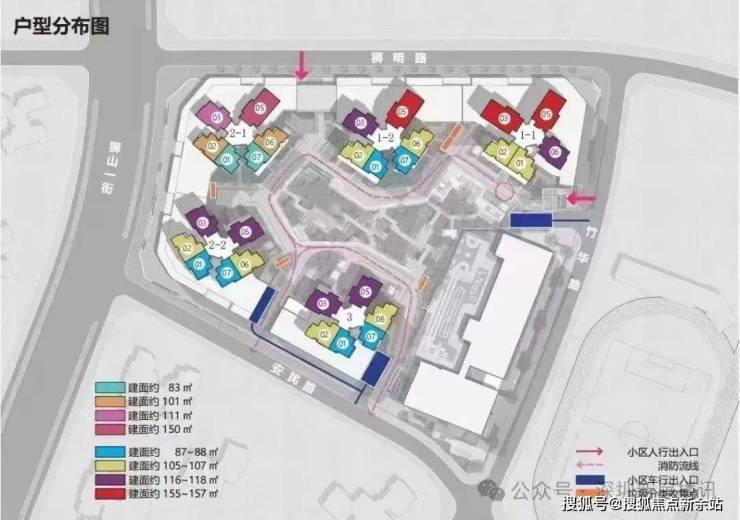 总规划1186户,其中2栋1单元2梯6户,1栋1单元楼王3梯5户,其它栋数全部3梯6户设计,地下室有3层,规划1335个车位,车位比超1:1.12。