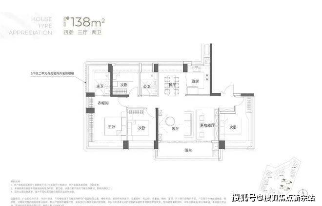 建面约138㎡4房3厅2卫