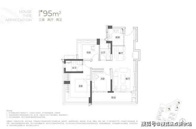 建面约95㎡3房2厅2卫