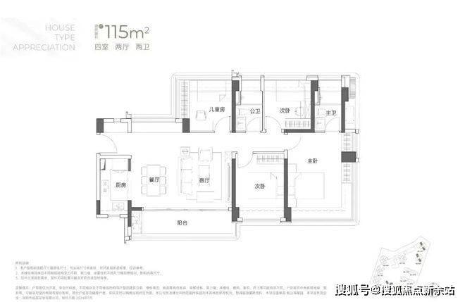 建面约115㎡4房2厅2卫