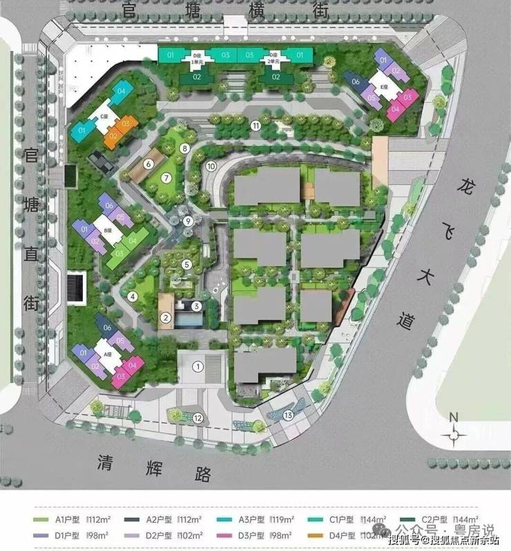【梯户比】1栋A/B/E座3梯6户,1栋C座2梯4户,1栋D座2梯3户