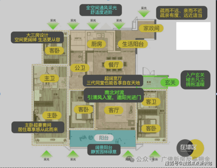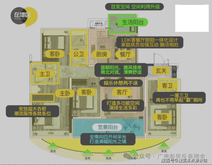 横扩阳台,加上大空间布局,无论是二胎家庭还是三代同堂家庭,都能在这阔境空间中各得其适。