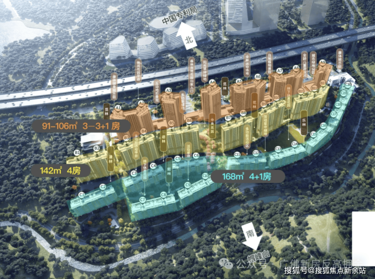 从建筑铺排图来看,项目以阶梯式排列布局住宅楼栋,既将上层高处视野价值发挥到最大,又避免了中下层视线遮挡,观景视野丝毫未受影响。住宅层叠而上,绿化垂直生长,可与高低地形相映交融形成更优的采光、通风、观景效果。另一项创新性设计,是采用的纯板楼住宅排布,能实现一面瞰山,一面揽园,视觉效果爆棚。