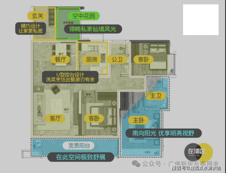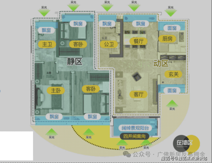 同片区其他项目,尽管是98㎡户型,都只能做到南向望花园,可龙狮居然能做到全屋对流,通透性更佳。