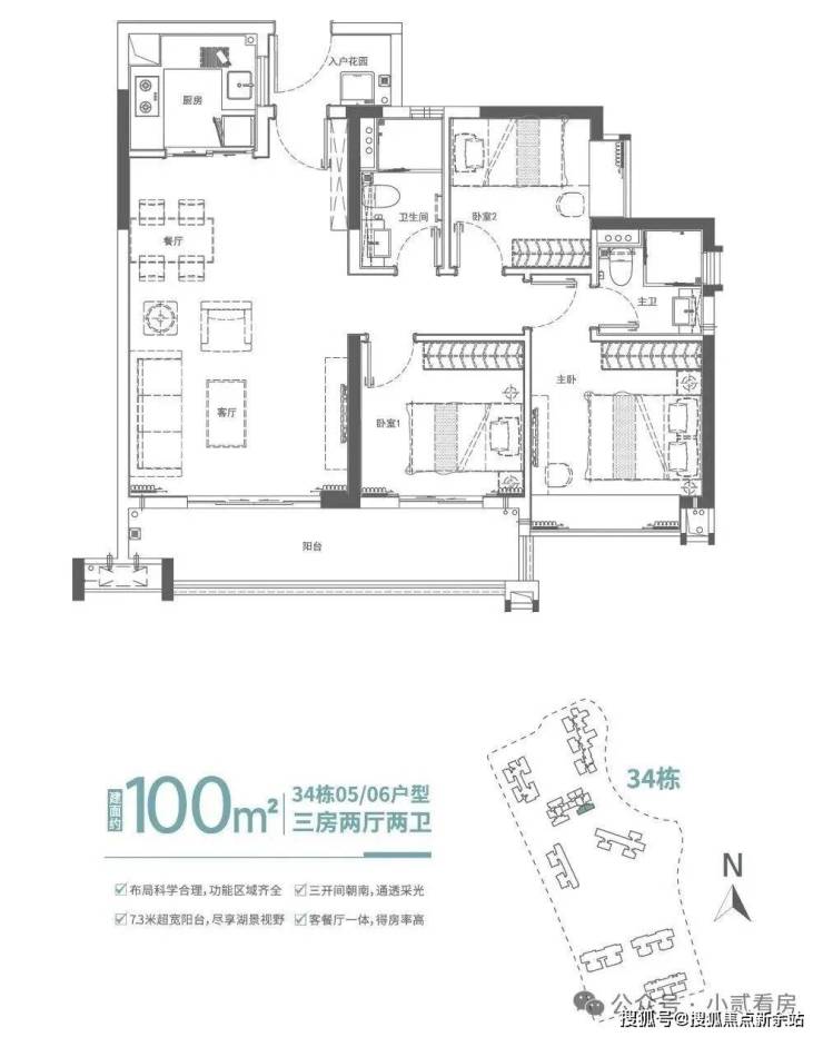 此次广地花园·观灏加推的新品34栋悦景楼座,面积段分别为86m²、96m²、100m²悦景三房,多面采景,三面望水,通透采光,充分利用户型的每一寸肌理,以有限的生活空间焕发更多生活灵感,打造全方位人性化居所。