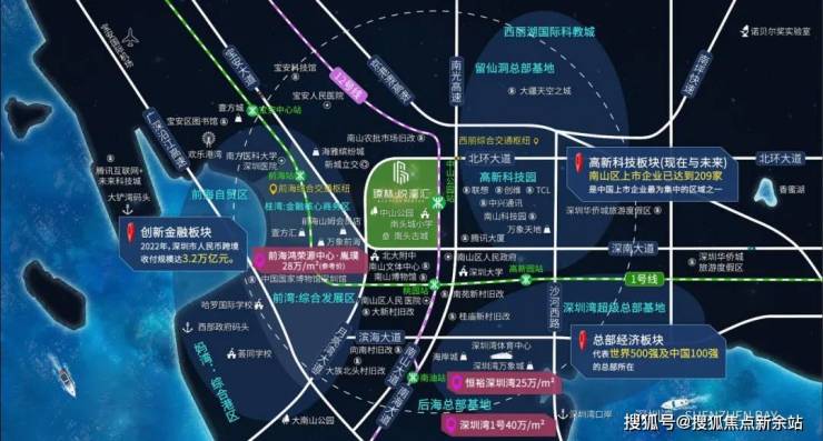 位踞前海深港合作区、高新科技园、后海、深圳湾及留仙洞总部群黄金原点,承接全市大量高净值人群的居住需求,深圳湾优质发展圈:最前沿+最宜居人居,对接香港新界北核心商务区。