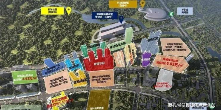 满京华·金硕和府位于科学公园核心C位住宅区,北侧毗邻光明科学公园(在建)、深圳国际美术馆(在建),距离6号线光明站步行约800米。,总规划分为7期,综合体量近百万平,备案指导价47300。