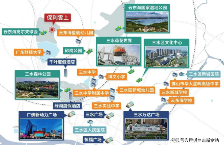 景观休闲配套:三水森林公园,荷花世界、云东海湖、芦苞温泉;