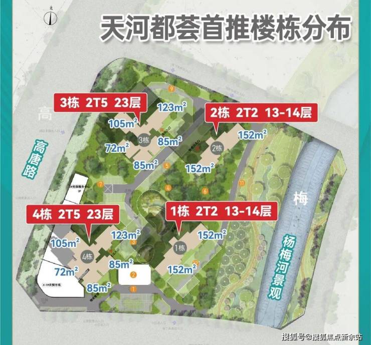👉1栋、2栋:是13-14层的小高层,2T2,靠近杨梅河,更安静、更舒适;